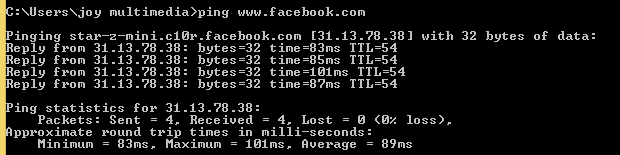 Example: ping www.facebook.com
